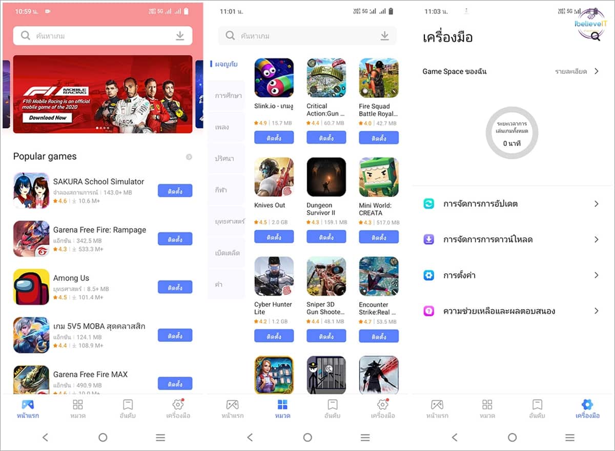 Game Space เป็นอีกหนึ่งฟีเจอร์สำครับคอเกม โดยเป็นศูนย์รวมของเกมที่น่าสนใจ ที่มีการแบ่งหมวดหมู่ไว้อย่างชัดเจน ทำให้ง่ายต่อการค้นหาและดาวน์โหลด นอกจากนี้ Game Space ยังมาพร้อมความสามารถในการเข้าถึงข้อมูลสำคัญในระหว่างการเล่นเกม เช่น ดูข้อมูล CPU อุณหภูมิ และปริมาณข้อมูลการใช้งาน โดยทำงานร่วมกับ Ultra Game Mode ที่สามารถปิดข้อความ และการแจ้งเตือนต่าง ๆ ในขณะเล่นเกม ให้คุณสามารถมุ่งเน้นไปกับการเล่นเกมได้อย่างเต็มที่