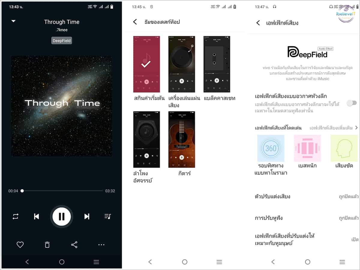 Music Player บน vivo Y30 5G มาพร้อมจุดเด่นด้าน Software ด้วยฟีเจอร์ DeepField เอฟเฟ็กต์เสียงที่พัฒนาโดย vivo ทำให้การถ่ายทอดเสียงที่ได้มีความนุ่มลึก คมชัดใสเคลียร์ รองรับการจำลองระบบเสียงรอบทิศทาง 360 องศา อีกทั้งยังปรับแต่งเสียงผ่าน EQ ได้ยืดหยุ่นและตรงใจผู้ใช้งานได้มากยิ่งขึ้น สำหรับคนที่ชื่นชอบการฟังเพลงไม่ผิดหวังอย่างแน่นอน