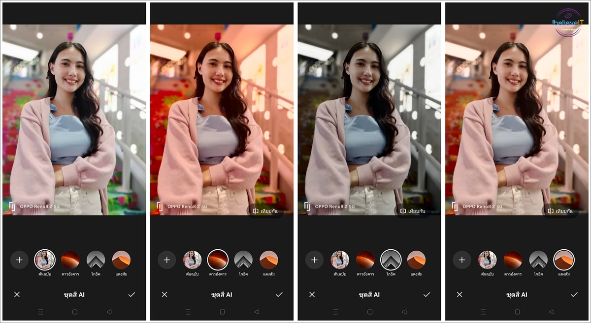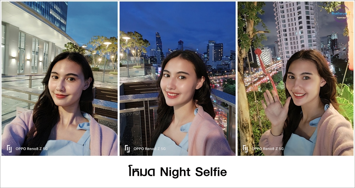 OPPO Reno8 Z 5G มาพร้อมโหมด Night Selfie ที่ช่วยปรับภาพให้มีความคมชัด และเพิ่มความสว่างให้กับพื้นหลังที่มีแสงสลัว และตัวบุคคลในภาพ