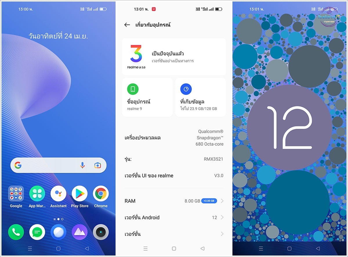 realme 9 รันบนระบบปฎิบัติการ Android 12 ครอบทับด้วย realme UI 3.0 นำเสนอรูปลักษณ์ใหม่ที่สดใสด้วยการออกแบบ Fluid Space และ Sketchpad AOD คุณสมบัติใหม่ที่ช่วยปกป้องความเป็นส่วนตัวของคุณ และการปรับปรุงทั่วทั้งระบบเพื่อทำให้สมาร์ตโฟน realme ของคุณเร็วขึ้นและลื่นไหลมากขึ้นกว่าเดิม
