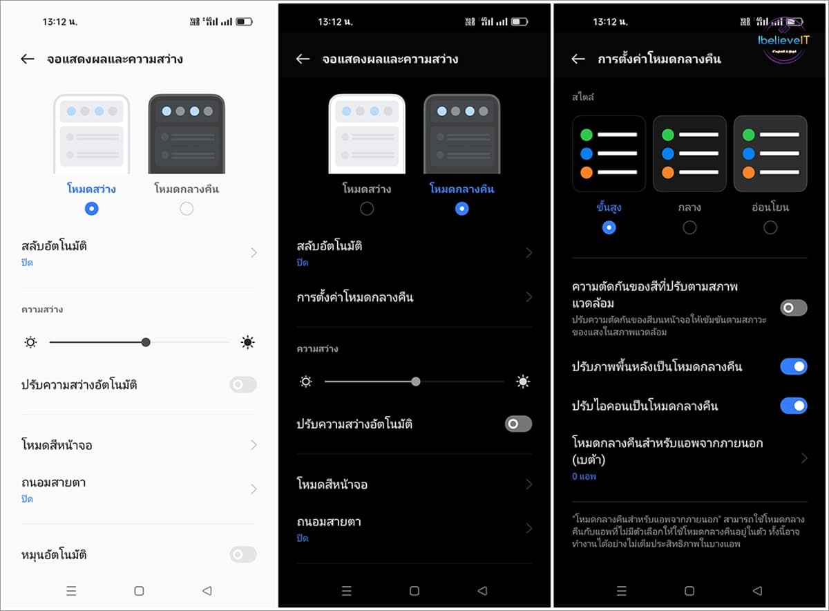 มาพร้อม Dark Mode หรือโหมดกลางคืน สำหรับปรับสีของหน้า UI ให้อยู่ในโทนสีดำ เพื่อช่วยให้ใช้งานได้อย่างสบายตามากยิ่งขึ้น โดยเฉพาะการอ่านหนังสือ และยังทำให้เครื่องใช้พลังงานน้อยลงช่วยยืดอายุแบตเตอรี่ด้วย โดยเปิดอัตโนมัติในเวลากลางคืน