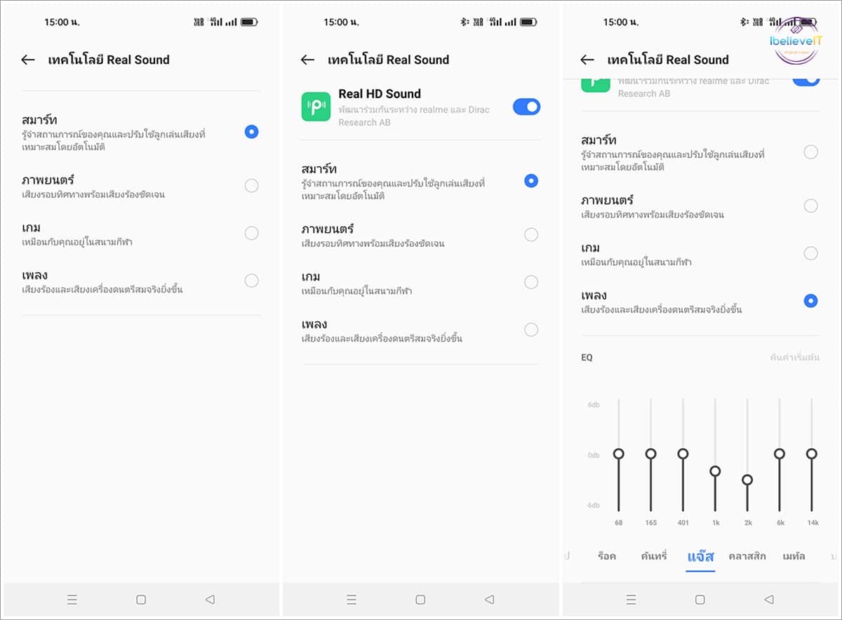 รองรับระบบเสียง Real Sound ที่พัฒนาร่วมกันระหว่าง realme และ Dirac Research AB ผ่านลำโพงสเตอริโอคู่แบบสเตอริโอ พร้อมรองรับ Hi-Res Audio เพื่อประสบการณ์การฟังที่เหนือชั้น โดยเฉพาะการฟังเพลง หรือชมภาพยนตร์ที่จะได้อรรถรสเพิ่มขึ้น